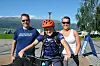 Henrik (13), Eli og Frode Solvang kom sjøvegen frå Deknepollen for å vere med på Sandanedagane. Henrik gleda seg stort til sykkeltur til Vereide, i løype der og tilbake til Sandane.