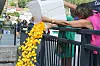 Per Ove Fossheim har akkurat tatt hand om vinnaren, anda var kjøpt av Gerd Berge som vart den heldige vinnar av 3000 kroner.