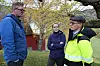 Riksantikvar Hanna Geiran besøkte Karnilshaugen i haust. Morten Ramstad frå UiB (f.v.), riksantikvar Hanna Geiran og Ole Søe Eriksen, seniorrådgiver hos Riksantikvaren.Biletet er teke på toppen av haugen. Foto: Jan Magnus Weiberg-Aurdal, Riksantikvaren.