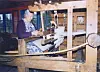 Pernella Denk i vevstolen på Nordfjord Folkemuseum 1. august 1987. Vevstolen står der enno slik ho forlet den. Foto: Nordfjord folkemuseum. Gallerikveld med utstilling i Vereide kyrkje Publisert 11.04.2025 - 04:42 kultur