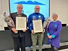 Kastmiljøet i Gloppen ved Jørund Årdal (t.v.) og sleggjekastaren Thomas Mardal er tildelte Gloppen kommune sin kulturpris. Prisen blei delt ut av nestleiar i samfunnsutvalet, Marit Elisabeth Larssen.
