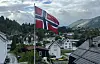 Flagget er kome opp ved avishuset i Nordstrandsvegen laurdag morgon, og vêrgudane ser ut til vise seg frå ei god side. Etter å ha vaska Sandane og Heradsplassen reine i natt, er det meldt bra vêr dei timane jubileumsarrangementet føregår.