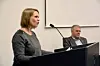 Katrine Anita Heggelund Haugerøy (biletet) og Ole Fosse Fardal, Gloppen SV, har klare meiningar om kommunedirektøren sitt framlegg om å bruke integreringstilskot for flyktningar til å saldere budsjettet.