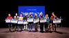 Saman med dei sju andre gåvemottakarane gjekk Vegar Sårheim (i midten) frå Gloppen utvikling opp på scena og mottok gåvesjekken frå Sparebankstiftinga Sogn og Fjordane.Stig Roger Eide.