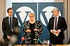 Venstre ligg dårleg an i nye Vestland fylke. Her leiartrioen Trine Skei Grande, Ola Elvestuen og Terje Breivik (t.v) på pressekonferansen før landsmøtet. Foto: Vidar Ruud/NTB scanpix/NPK.