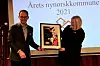 Ordførar i Ål, Solveig Vestenfor, tok imot prisen for årets nynorskkommune 2021 frå statssekretær Oddmund Løkensgard Hoel. Foto: John Erik Lindgren, Språkrådet.