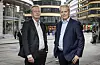 Konserndirektør for Trykk og Distribusjon i Amedia, John Kvadsheim (t.v.) og administrerande direktør i Schibsted Delivery, Hans Kristian Hallén-Hasaas har inngått intensjonsavtale om distribusjon. Foto: Ihne Pedersen/Amedia.