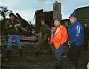 Kong Harald (t.h.) møtte opp i boblejakke og gummistøvlar då han i 1992 besøkte den orkanramma bygda Rovde på Sunnmøre. Foto: Bjørn Sigurdsøn/NTB/NPK. Augneblinken då Harald stod fram som folkekonge NPK-NTB-Marius Helge Larsen NPK-NTB-Marius Helge Larsen Publisert 04.09.2022 - 11:30 nyhende fritid kongehus