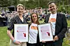 Frå kåringa av Årets nynorskbrukar i 2025. Då gjekk prisen til Vipps MobilePay AS og Stø AS (Bank-ID). Frå venstre Ida Håvik frå Stø og Bank-ID, Ida Nicoline Glosimot og Lars Tore Skau frå Vipps Mobilpay.