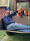 1972-modellane Finn Tokvam og Massey Ferguson 135, begge i avslappa positur. – Berre lyden av han er lyden av barndom – det er nesten musikk, seier Tokvam om traktoren han kjøpte tidlegare i vår. Foto: Ivar Lennon Tokvam.