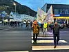 Fritz Schjølberg t.v. og Arnfinn Brekke gjekk i spissen for fakkeltoget gjennom Sandane sentrum laurdag ettermiddag. Parolane fortalde om støtte til forfylgde kristne over heile verda.