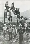 Dei fire førsteklassingane på Austrheim skule. F.v. Ragnhild, Kjell, Eva og Egil. Bak dei på leikestativet dei «store» andreklassingane som dei skal gå i lag med. Desse var førsteklassingar i 1975 Publisert 24.08.2025 - 05:20 Sist oppdatert 26.08.2025 - 10:17 nyhende