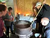 Det nærmar seg at osten kan takast ut av gryta. Veronika Gulsett (f.v.), Ester Løvland, Pernille Bjørck, Daniel Thowsen og Atle Løvland følgjer med. – Det er kjekt å gjere det på gamlemåten Benedikte Grov Benedikte Grov Benedikte Grov Journalist Publisert 16.07.2024 - 10:00 fritid kultur og underhaldning nyhende