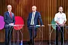 Mange kranglesaker ligg på bordet dersom det blir regjeringsforhandlingar mellom Ap-leiar Jonas Gahr Støre, Sp-leiar Trygve Slagsvold Vedum og SV-leiar Audun Lysbakken. Foto: Håkon Mosvold Larsen/NTB/NPK.