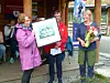 Fylkesleiar for Sogn og Fjordane Helselag, Astrid Juklestad (f.v.), og leiar for Gloppen Helselag, Magnhild Ravnestad overrekte prisen, eit trykk av kunstnaren Gunilla Holm, til leiar i Åsen Vel, Birgith Hjelle Roset. Foto: Atle Søreide.