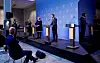 Heilt til venstre i bildet står kunnskapsminister Guri Melby (V). Ho fortalde på pressekonferansen tysdag at det overordna målet er at alle barn skal tilbake på skulen før sommaren. Foto: Håkon Mosvold Larsen/NTB scanpix.