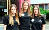 ELEVMENTORAR: Bertine Førde (f.v.), Greta Jurgaityte og Inga Førde er elevar på vg2 barne- og ungdomsarbeidar og elevmentorar ved Mo og Øyrane vidaregåande skule. Foto: Birthe Johanne Finstad/Vestland fylkeskommune.