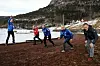 Idrettslaga rundt fjoden er klare til å ta over opprustinga av Idrettsplassen. F.v.: Dagfinn Nyhammer (GFIL) med startpistol, Else Margrethe Larsen (Fj/V), Beate Dybendal Nordvik (STIL), Gro Pleym Iversen (Fotballgruppa i STIL). Rektor Hallgeir Hansen (t.h.) slår fast at opprustinga er svært viktig for Firda vgs.
