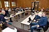 – Det var med vantru eg såg at Hyen skule ikkje var med i økonomiplanen, sa Per Ståle Husevåg (nærast til høgre) i oppvekstutvalet tysdag. Vidare rundt bordet sit Magni Aa Berge (Sp), Bjarte Gangeskar (V), Bernt Reed (Sp), Janne Marie Solheim (Sp), Jørgen D. Husbyn (MDG), kommunalsjef Per Arne Strand og kommunedirektør Anders Skipenes.