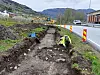 Arkeolog Ragnhild Egeland Torp undersøkjer nærare den første grava arkeologane fann. Foto: Lars Jølle Berge/Vestland fylkeskommune. Fleire graver frå eldre jarnalder funne på Vestlandet NPK NPK Publisert 27.06.2025 - 11:58 nyhende innenriks ntb