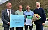 ØKOLOGISK GARDSDRIFT: Ekteparet Turid Haga Vange og Joar Tistel får Klima- og miljøprisen for landbruket 2024. Prisen vart delt ut av leiar av hovudutval for næring, Oddmund Klakegg (t.v.) og landbruksdirektør hos Statsforvaltaren, Christian Rekkedal. Foto: Kjersti Sognnes, Vestland fylkeskommune.