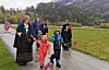 Toget i Devik klar til avgang. 17 personar gjekk frå Nigard til Bjørkehaugen. Devikarane stilte til og med med eige korps. Ikkje dårleg! Foto: Einar Duvold.