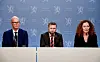 Helseminister Bent Høie, helsedirektør Bjørn Guldvog og Camilla Stoltenberg frå Folkehelsinstituttet under pressekonferansen om koronaviruset onsdag kveld. Foto: Terje Pedersen / NTB scanpix / NPK