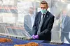 Helse- og omsorgsminister Bent Høie besøkte i byrjinga av mai RK grafisk og Grafisk Kompani på Grorud, som har gått frå trykk av grafisk materiell til å produsere smittevernutstyr/visir. Her får han prøve å lage ei maske sjølv. Foto: Ørn E. Borgen / NTB scanpix / NPK