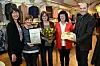 - Vi tykkjer det er så kjekt at vi kan ha denne butikken på Sandane. No satsar kjeden berre på større stader, seier Magni Slagstad (f.v.), Venke Ervik Tystad og Oddlaug Wiik Schjølberg. Ingrid Eide Johansen er laurdagshjelp i butikken og kunne ikkje vere til stades då Martha Sundal Engeland og Jan Paulen overrekte kake, blomster og diplom.