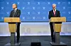 Finansminister Trygve Slagsvold Vedum (Sp) og statsminister Jonas Gahr Støre (Ap) må konstatere at dei to regjeringspartia går tilbake på ei fersk meiningsmåling. Foto: Annika Byrde/NTB/NPK.