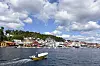 Sol, båtar og turistar på ein sommardag i Kragerø. Meteorologane varslar at det framleis skal vere sommartemperaturar i Sør-Noreg, så det er fullt mogleg å ta ein båttur den siste helga i august. Foto: Marianne Løvland/NTB scanpix/NPK.