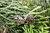 Tuja er ein av dei plantene som har med seg flest blindpassasjerar til Noreg. Her er det to eksemplar av breitegen Rhaphigaster nebulosa som har komme med. Foto: Anders Endrestøl/NINA.