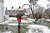Når det er mykje regn på kort tid, seier NVE at det er lurt å sjekke at sluk og stikkrenner er opne slik at ein unngår å få vatn i kjellaren. Foto: Heiko Junge / NTB / NPK