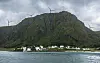 Vindkraftpausen på land skal vere over, men norske kommunar har så langt vist liten interesse for nye prosjekt. Her ser vi vindturbinar tilhøyrande Haram vindkraftverk på fjellet over Ulla på Haramsøya i Ålesund kommune i Møre og Romsdal. Foto: Halvard Alvik/NTB/NPK.