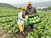 Landbruks- og matminister Sandra Borch og kålprodusent Anders Hørthe i kålåkeren på Hørte gard i Sylling i Buskerud med årets nykål. Foto: Stiftinga Norsk Mat.