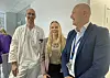 Presisjonsdiagnostikk er ei viktig satsing for patologiavdelinga. Innføringa av den nye teknologien blei markert med ei tilstelling for dei tilsette på avdelinga. Frå venstre: Rune Hørgård Tilseth, Tonje Bøyum Riste og administrerande direktør Arve Varden. Foto: Helse Førde.