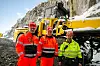 Teknisk byggjeleiar Harald Aamot (f.v.) og byggjeleiar Jan Bjarne Thorsnes i Statens vegvesen saman med anleggsleiar Pål Børslid i AS Birkeland Entreprenørforretning, framfor tunnelriggen ved nordre påhogg. Begge foto: Ole Kristian Åset.