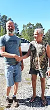 Det blei eit hjarteleg gjensyn for Steinar Øvrebø (t.h.) og Harald Mikal Halvorsen. Foto: Judith Hegrenes. Rørande stund då Steinar fekk besøk av redningsmannen sin Publisert 18.07.2025 - 21:01 Sist oppdatert 18.07.2025 - 21:31 nyhende