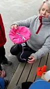 Vi har også brukt å få til russetreff på kunstgrasbana saman med Firda-russen. Dette er stort - å få lov å sitte i russebilane, høyre på musikk og slå av ein prat. I den samanheng har vi og ein russeknute «ta high five med ein raudruss».