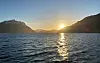 Solnedgang på ferja mellom Anda og Lote.Kari Jordanger.