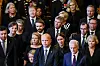 Regjeringa Støre samla til opninga av Stortinget i oktober i fjor. Fleire av Sp-statsrådane i dette bildet, mellom anna tidlegare justisminister Emilie Enger Mehl og landbruksminister Geir Pollestad, kan ryke ut. Foto: Ole Berg-Rusten/NTB/NPK.