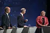 Sp-leiar Trygve Slagsvold Vedum (t.v.), Jonas Gahr Støre (AP) og Erna Solberg (H) er alle statsministerkandidatar. I VGs nye statsministermåling får Solberg mest støtte. Foto: Terje Pedersen/NTB/NPK.