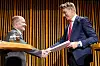 Administrerande direktør for Sintef Energi og leiar for straumprisutvalet Inge Røinaas Gran (t.v.) leverer rapporten sin til olje- og energiminister Terje Aasland (Ap). Foto: Håkon Mosvold Larsen/NTB/NPK.