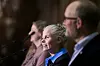 Tuva Moflag (Ap), Kirsti Bergstø (SV) og André Myhrvold (Sp) under pressekonferanse på Stortinget der SV og regjeringspartia søndag kom til semje om statsbudsjettet for 2025. Foto: Javad Parsa/NTB/NPK.