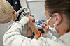 13-åringen Eirik Lyngstad får første dose med Pfizer-vaksine på Bjerke vaksinesenter i Oslo. Foreldre må gi samtykke før barna deira blir vaksinerte, men vaksineforskar Gunnveig Grødeland er ikkje bekymra for vaksinasjonen. Foto: Heiko Junge/NTB/NPK.