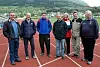 Anleggsutvalet i Noregs Friidrettsforbund likte det dei såg då dei vitja Byrkjelo stadion sist onsdag føremiddag. Odd Raad frå Breimsbygda fil (t.v.), viste rundt Finn Skram frå NFIF, dagleg leiar Narve Heggheim frå Friidrettskrinsen, kultursjef Jan Kjetil Øygard frå Gloppen kommune, og leiar i utvalet Kjellaug Eik, Johnni Håndstad og Ole Petter Sandvig frå NFIF.