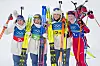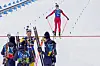 På den ståande skytinga skaut Simon fullt hus, Öberg brukte eitt ekstraskot, Hjelmeset Kirkeeide to. Ut frå skyting leia Frankrike med knapt eitt minutt på Sverige, medan Noreg og Maren Hjelmeset Kirkeeide var drygt 20 sekund bak den svenske jenta.