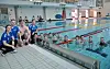 Stemninga er på topp når rekruttgruppa med unge symjarar i STIL har samling i Trivselsbadet. På bassengkanten ser vi f.v. leiar i symjegruppa i STIL, Eva Linn Fossheim, Aidas Marcinkus, instruktør Daniel Vindfjell og May Ines Navelsaker. Aidas og May Ines er lokale trenarar for rekruttane.