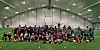 105 unge spelarar i alderen seks til tolv år, seks spelarar og tre trenarar frå Sogndal og fleire foreldre og trenarar frå Jølster bidrog til ein flott fotballkveld i Skei storhall torsdag. Foto: Jølster fotball.